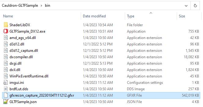 第三,我们观察到 GFXReconstruct .gfxr 捕获文件的创建,该文件将在应用程序关闭后准备好进行处理。默认情况下,捕获文件将在应用程序的工作目录中创建,如下所示。