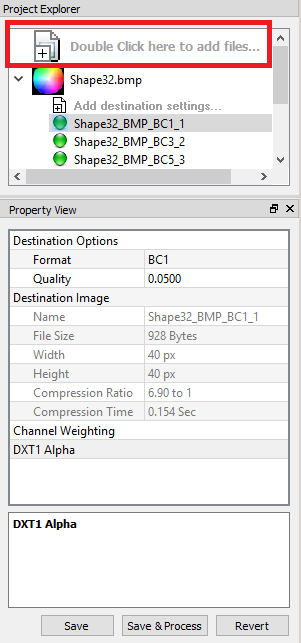 使用 GPU 加速编码器时,GUI 和 CLI 工具都会使用临时的 CPU 缓冲区来确保编码无缝流畅。要了解其工作原理,请尝试使用“Encode with”选项 GPU_DirectX 或 GPU_OpenCL 将 EXR 文件格式的图像压缩为 BC1 至 BC5 或 BC7 等格式。