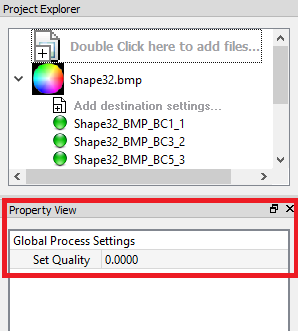 在 GUI 中,用户可以在处理之前,使用全局设置值来覆盖所有目标压缩的单个设置。目前,只能通过新的全局设置来覆盖质量设置。设置为零将恢复旧值并禁用全局设置。