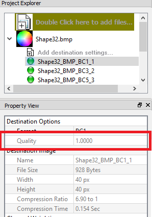 使用:CompressonatorCLI -logcsv -fd BC1 -EncodeWith HPC  .\images\ruby.bmp ruby_bc1.dds