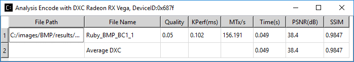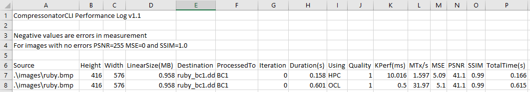 然后:CompressonatorCLI -logcsv -fd BC1 -EncodeWith OCL  .\images\ruby.bmp ruby_bc1.dds