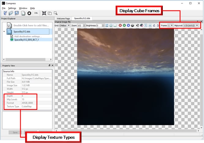 此版本提供了一个立方体贴图支持的预览版本。支持 RGBA_8888 和 RGBA_F16 数据类型,下一个版本将提供更多格式支持。支持 MipLevel 立方体贴图,用户可以在 DDS 或 KTX 文件格式中查看压缩的立方体贴图文件。
