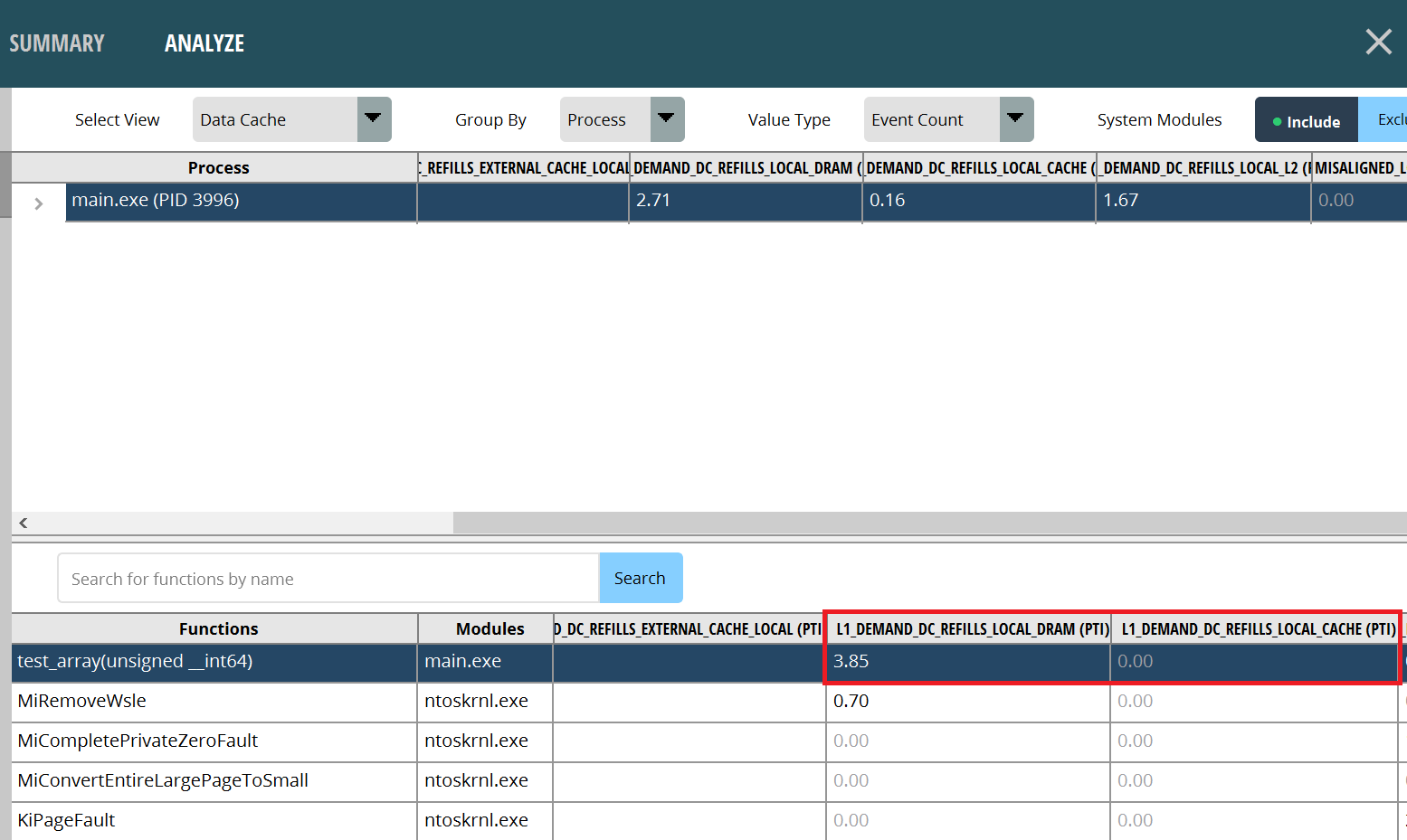 下一阶段是分析问题,重点关注性能分析器中的PMC计数器。