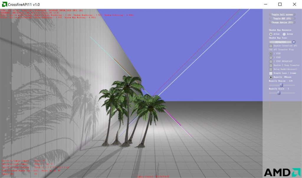 CrossfireAPI11 示例演示了 Crossfire API 在阴影缓存中的用法。