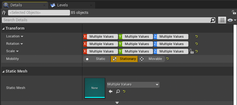 打开这些蓝图并将**移动性**从静态更改为静态,然后保存蓝图和关卡,它们将开始渲染速度。