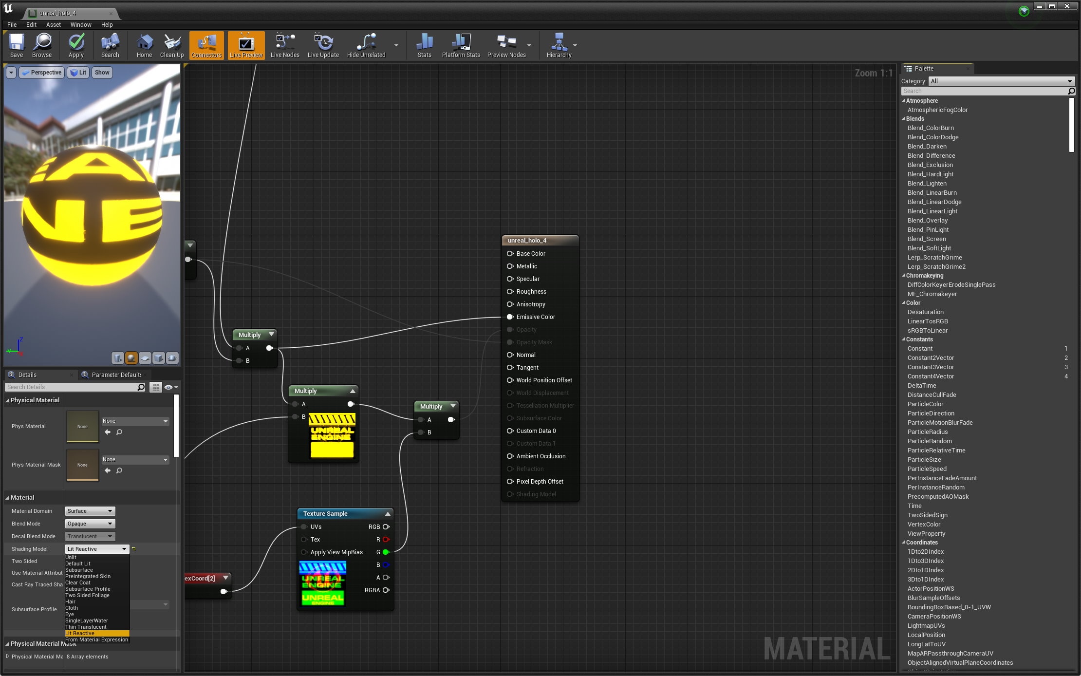 patch -p1 < <path/to/patch> 替换 <path/to/patch> 为适用于引擎版本的 `LitReactiveShadingModel.patch` 文件的路径。应用并重新构建引擎后,就可以在材质编辑器中选择Lit Reactive着色模型了。