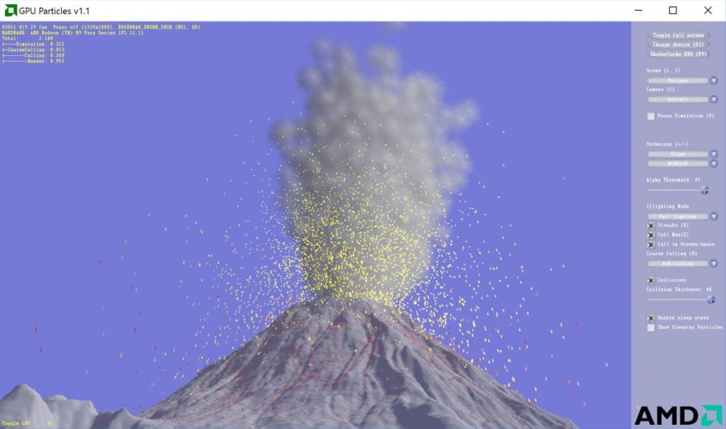 此示例演示了如何实现简单的基于 GPU 的粒子系统。它还展示了如何执行深度缓冲区碰撞以及如何在 GPU 上对粒子进行排序以实现光栅化广告牌的正确混合。