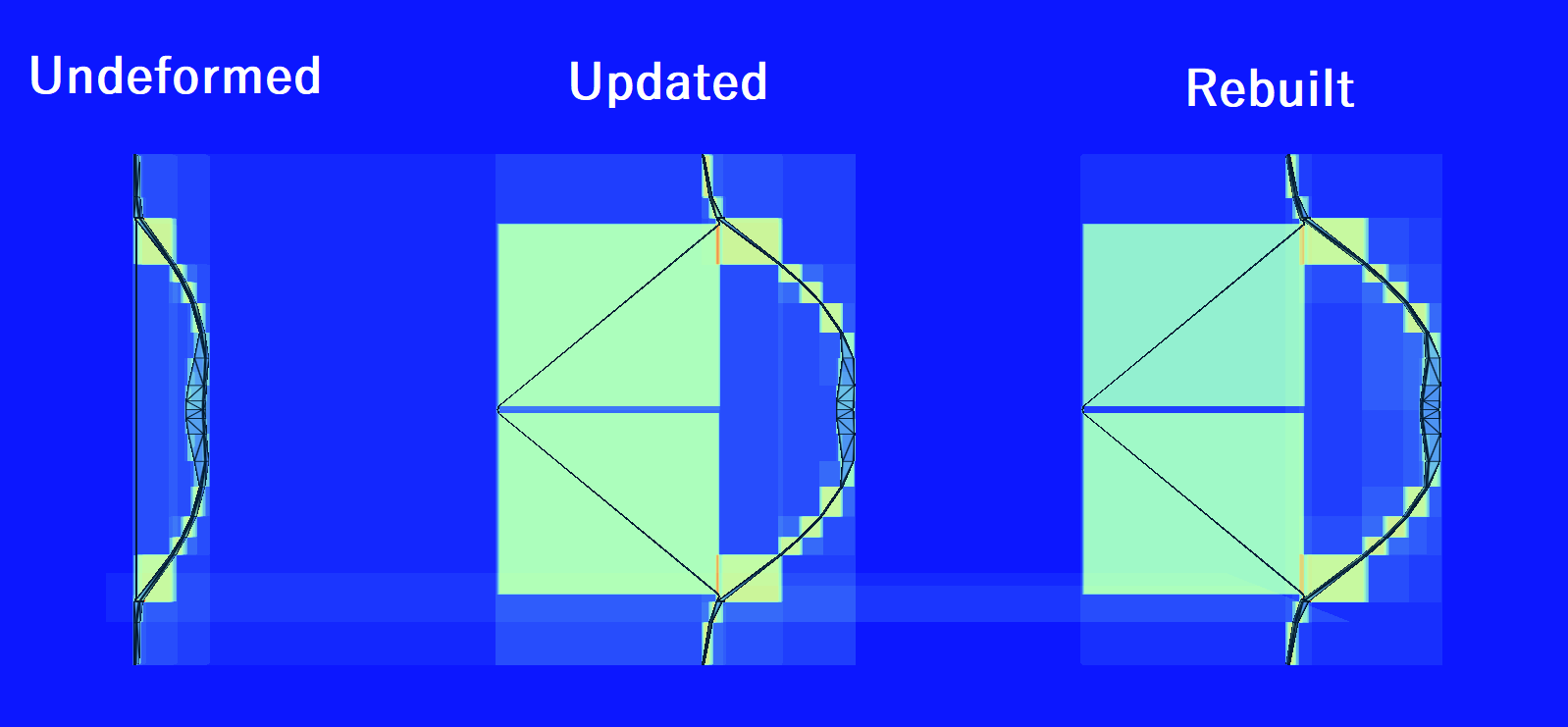 现在,让我们比较一下使用构建模式与使用更新模式(以未拉伸的弓作为源)构建的拉伸弓的 BVH 质量。