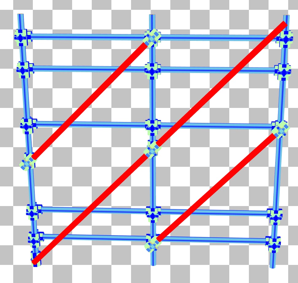 通过将脚手架网格在 BLAS 空间中旋转 45 度,使水平杆与 x 轴对齐,可以轻松地进行改进。这将产生以下 BLAS: