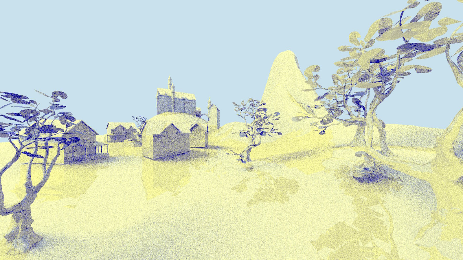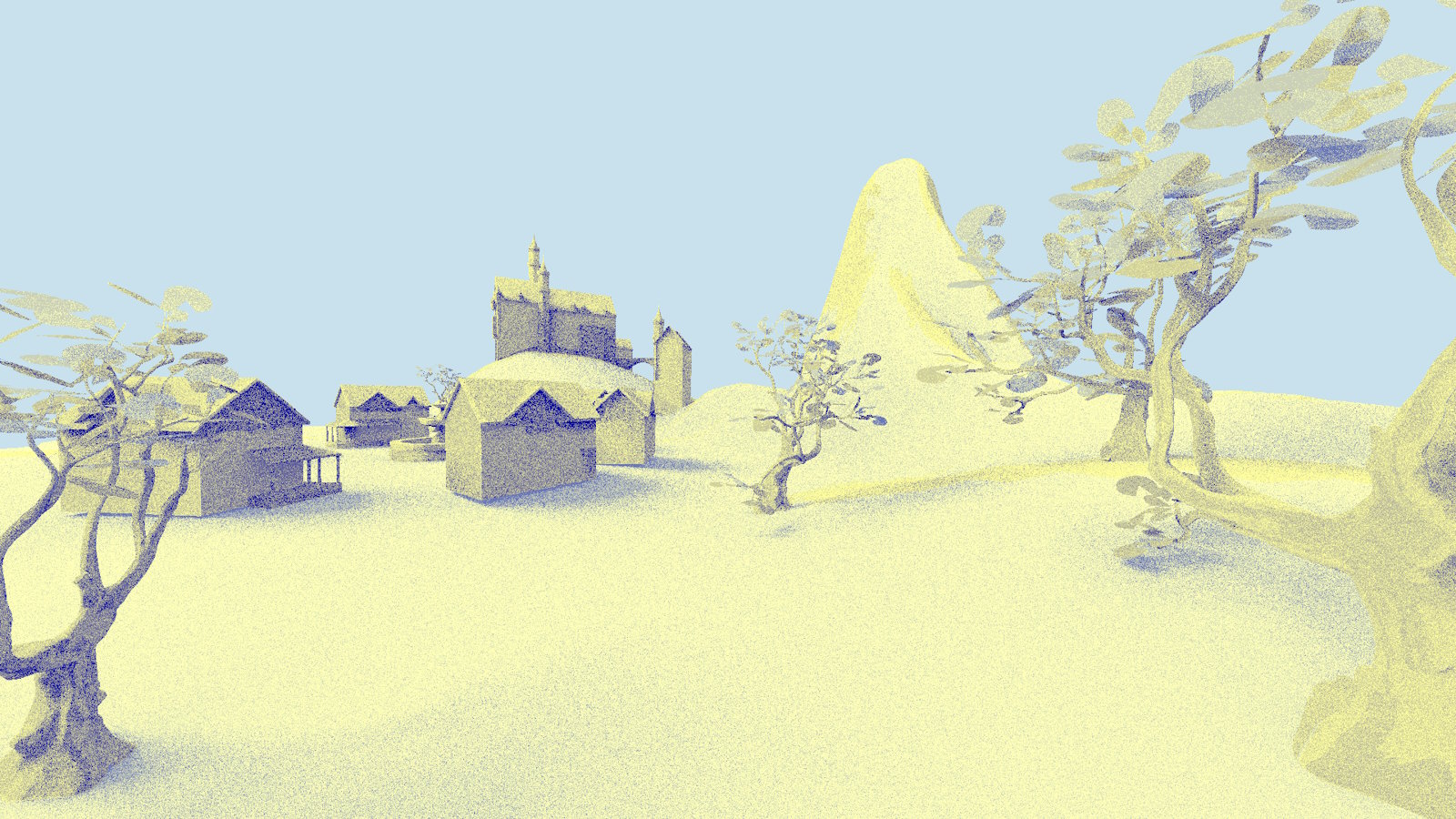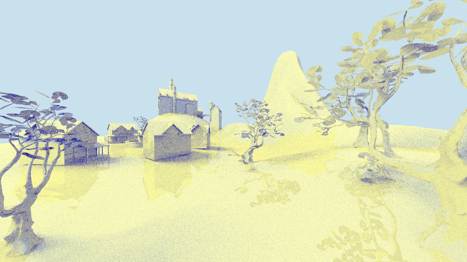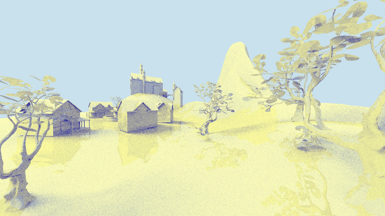 实现此处提到的每项优化后,渲染时间仅使用了原始渲染时间的 66.3%*,从 5.458 毫秒降至 3.621 毫秒,同时保持渲染图像与原始图像相似。树木的阴影在第二张图像中更暗,因为阴影光线没有调用任何命中着色器,但这可以通过创建带有小三角形的简化树叶三角形网格,并仅使用实例掩码将此实例用于阴影光线来缓解。