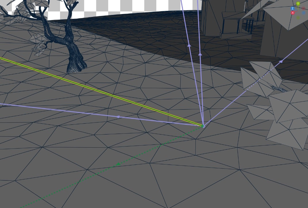 投射的阴影光线方向是从一个倾向于场景方向光方向的分布中绘制出来的。查看从背离方向光的三角形投射的光线,揭示了另一个优化机会。