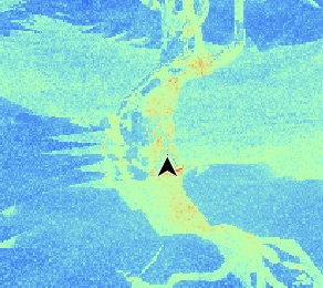 从热图的视觉上看,山下面似乎有很高的遍历成本。点击“Traversal loop count”(遍历循环次数)列标题将按总遍历成本对分发坐标列表进行排序。点击成本最高的条目,通过指向选定坐标的黑色光标会显示,它是中心树的反射中的少数几个昂贵调用之一,但目前我们对山下的区域更感兴趣。