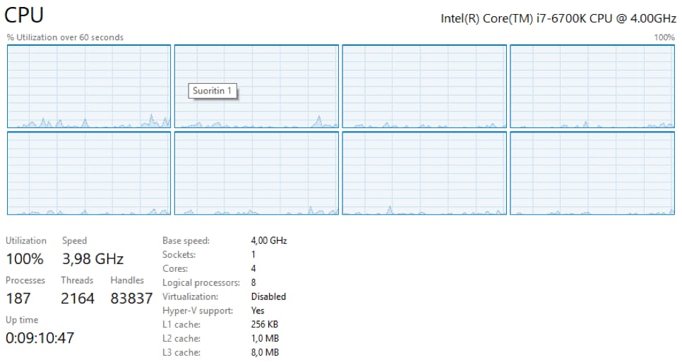 | Intel Core i7-6700K | 8 | 37m 12s (2,232s) | 1.11x |