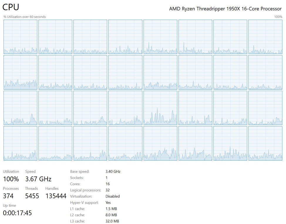 | AMD Ryzen Threadripper 1950X | 32 | 14m 43s (883s) | 2.74x |