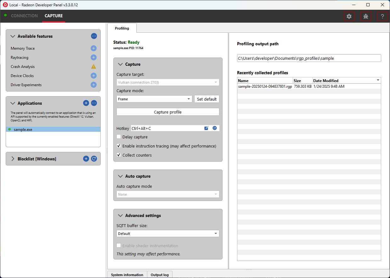 此功能支持捕获 GPU 配置文件,以在 Radeon GPU Profiler 中查看。
