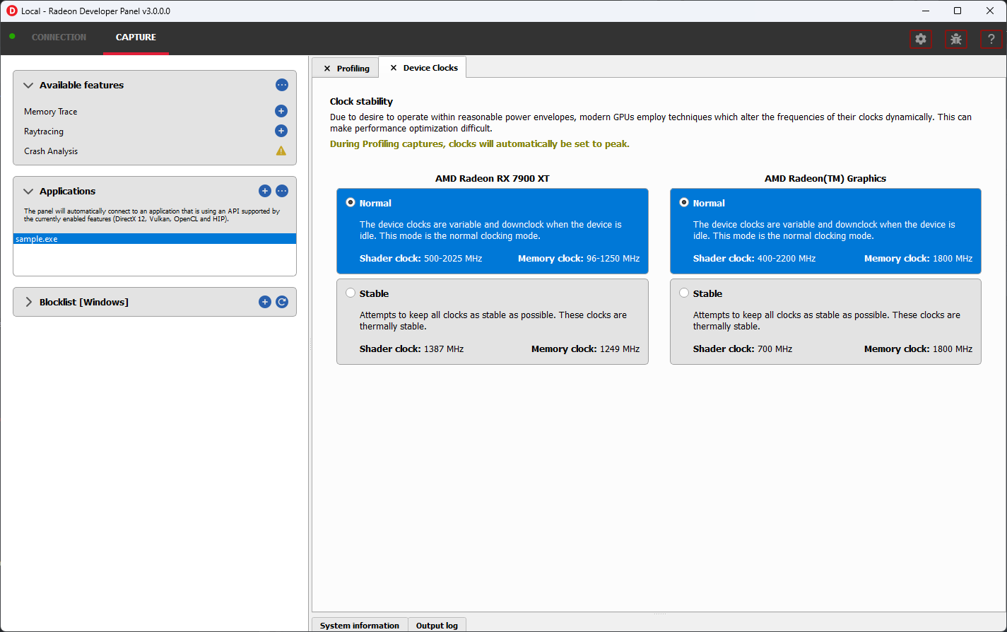 Radeon Developer Panel (RDP) 允许开发人员选择多种时钟模式。