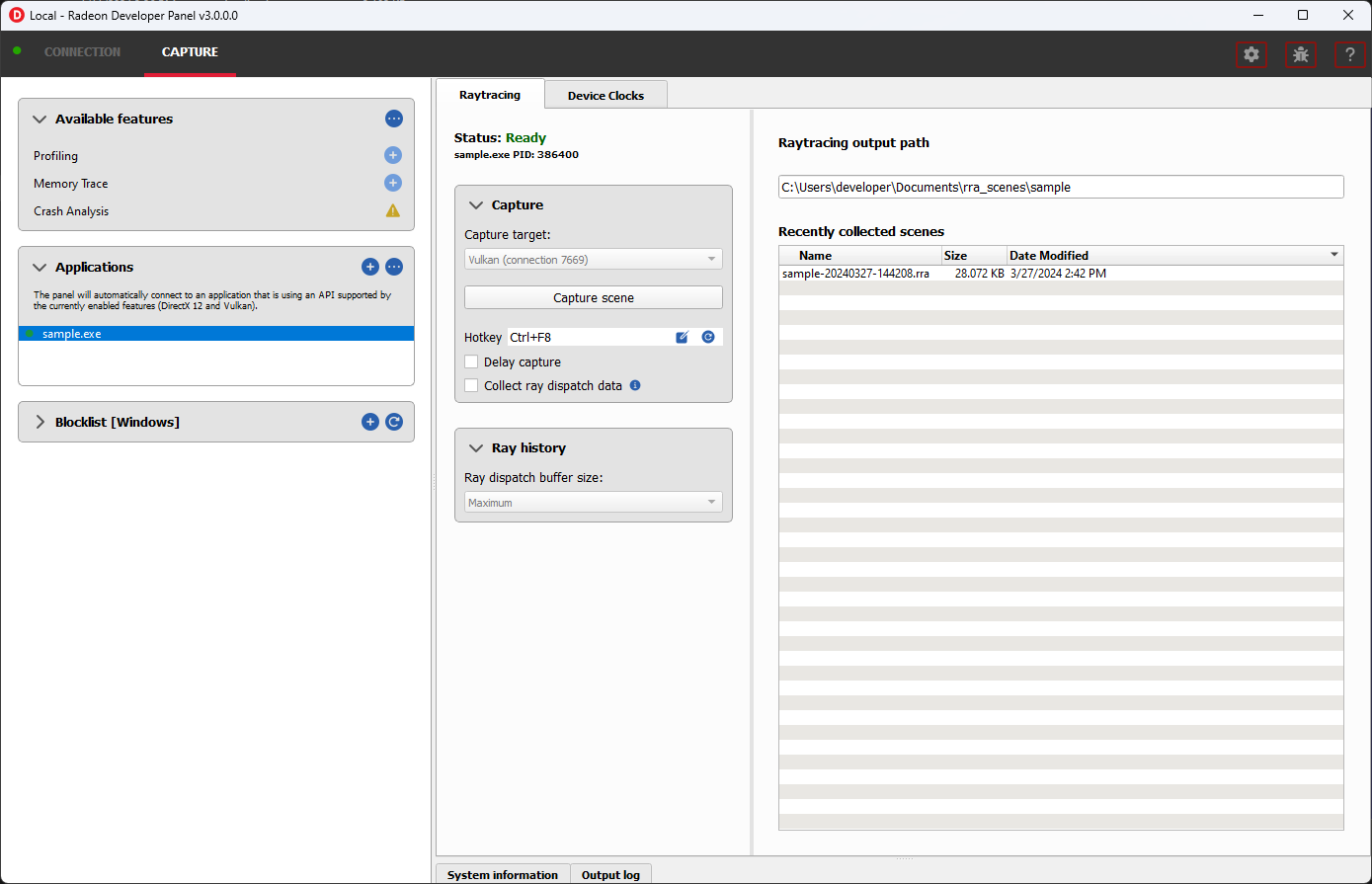 此功能支持捕获光线追踪场景,以在 Radeon Raytracing Analyzer 中查看。