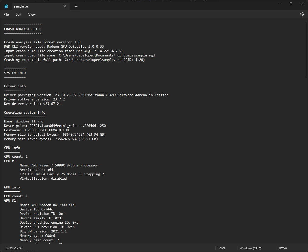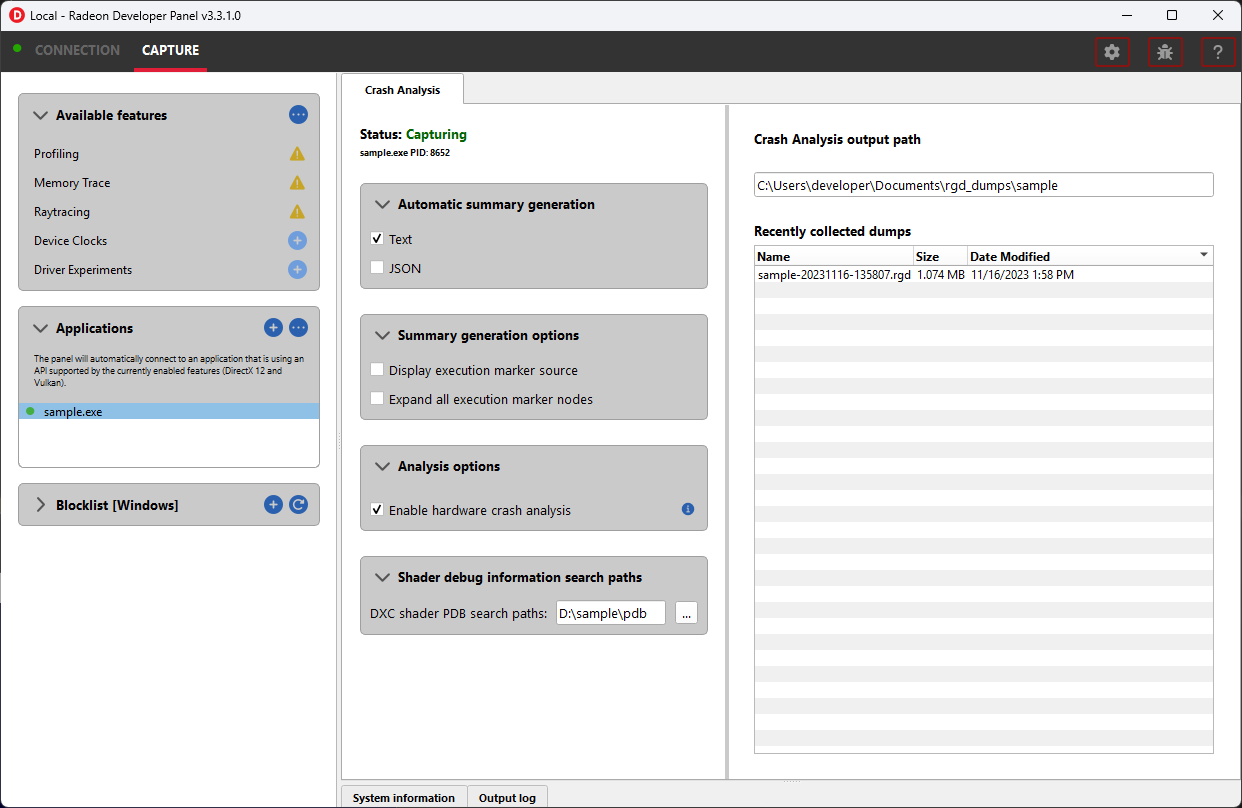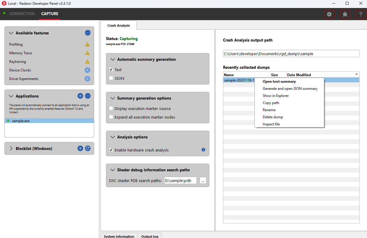 必须在设置配置中正确设置 Radeon GPU Detective 可执行文件路径才能生成崩溃摘要。