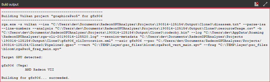 好了,我们使用 RGA 构建了第一个 Vulkan® 管线。