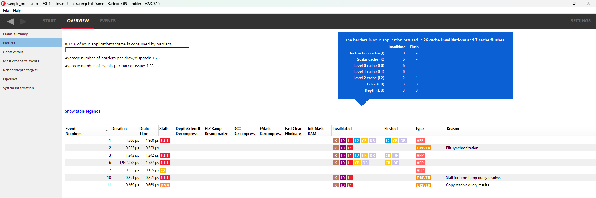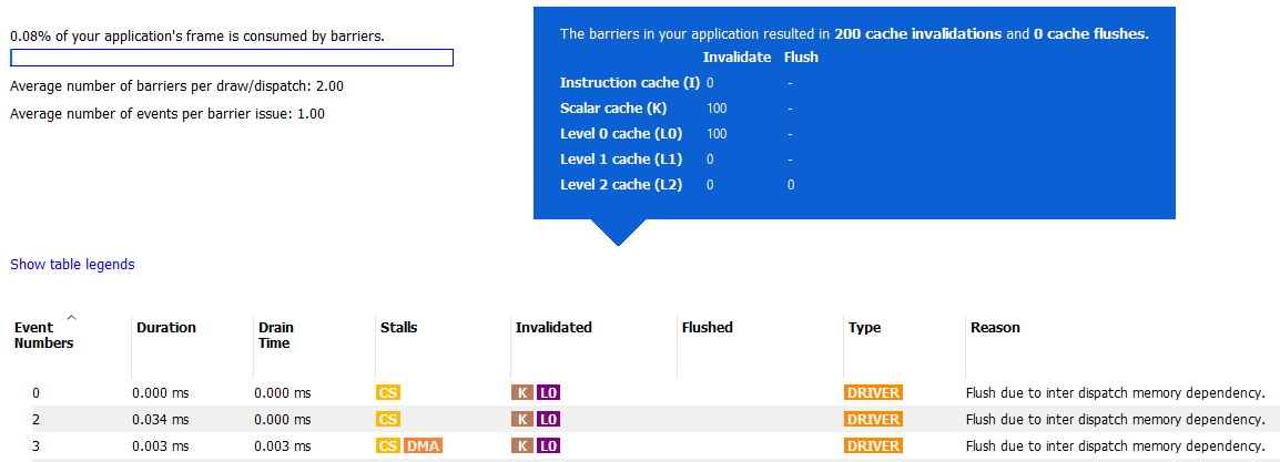 此摘要还显示了每次绘制或分派的平均屏障数量以及每次屏障发出的平均事件数量。