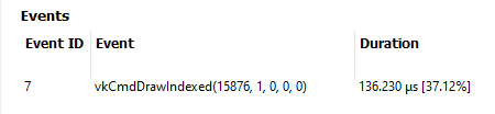 持续时间 渲染到渲染目标的所有事件的总持续时间。例如,如果 3 个事件写入深度缓冲区,则持续时间是这 3 个事件持续时间的总和。