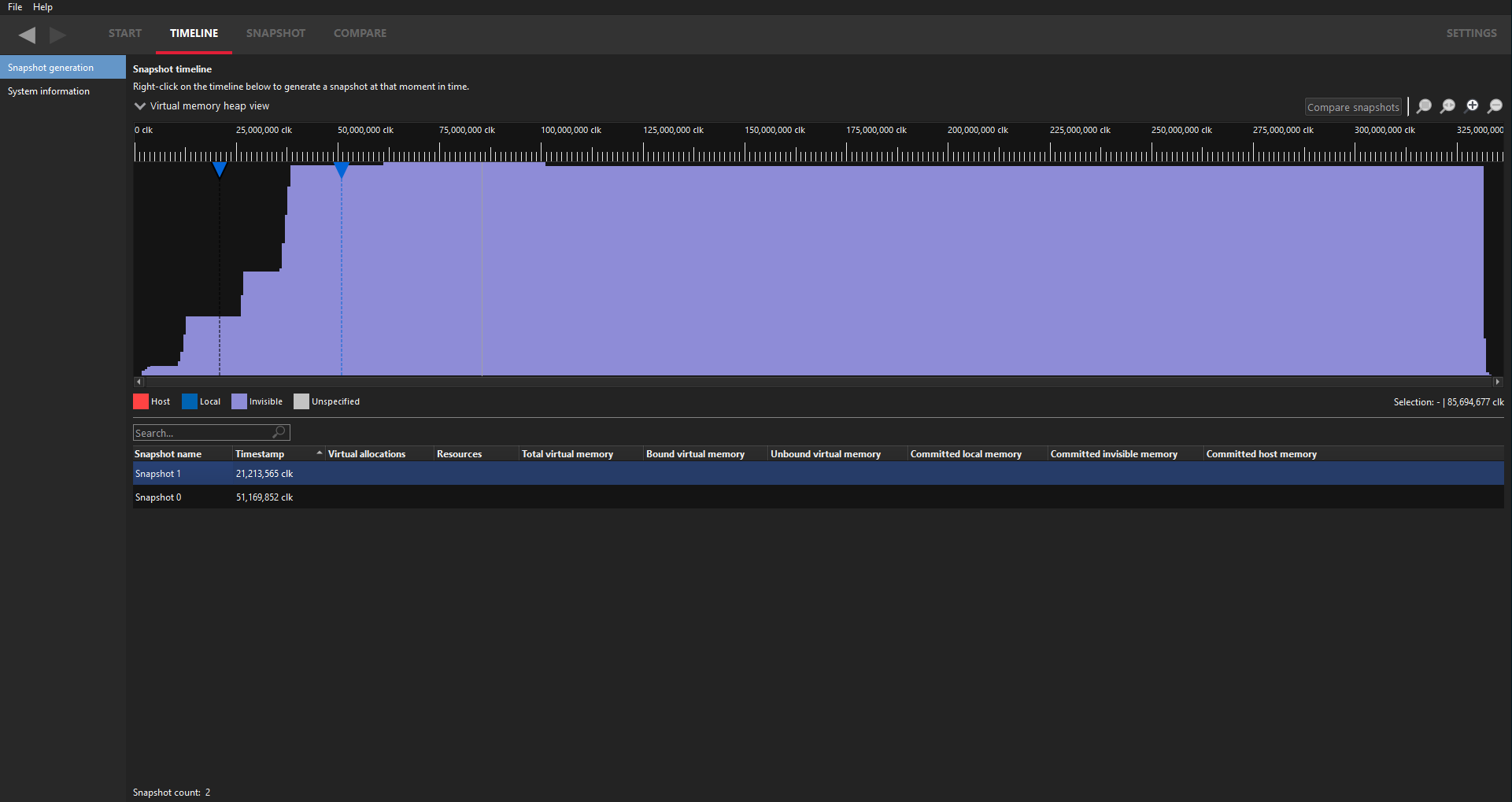 显示驱动程序实验通知 如果选中,Radeon Memory Visualizer 将在用户界面的主下拉菜单下方显示一个通知横幅,指示加载的内存跟踪文件包含修改后的驱动程序实验。