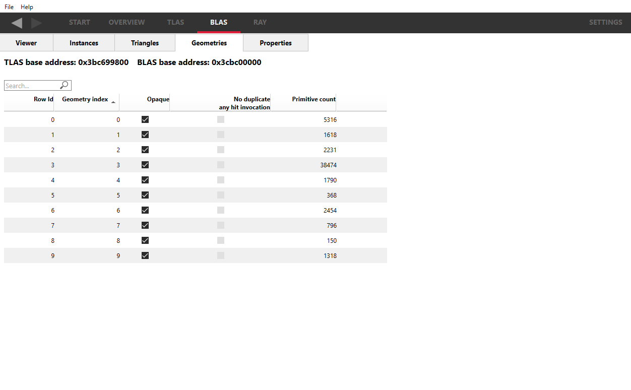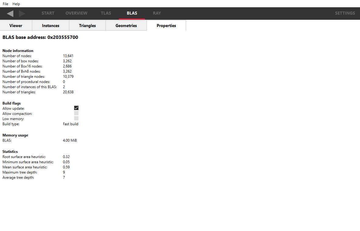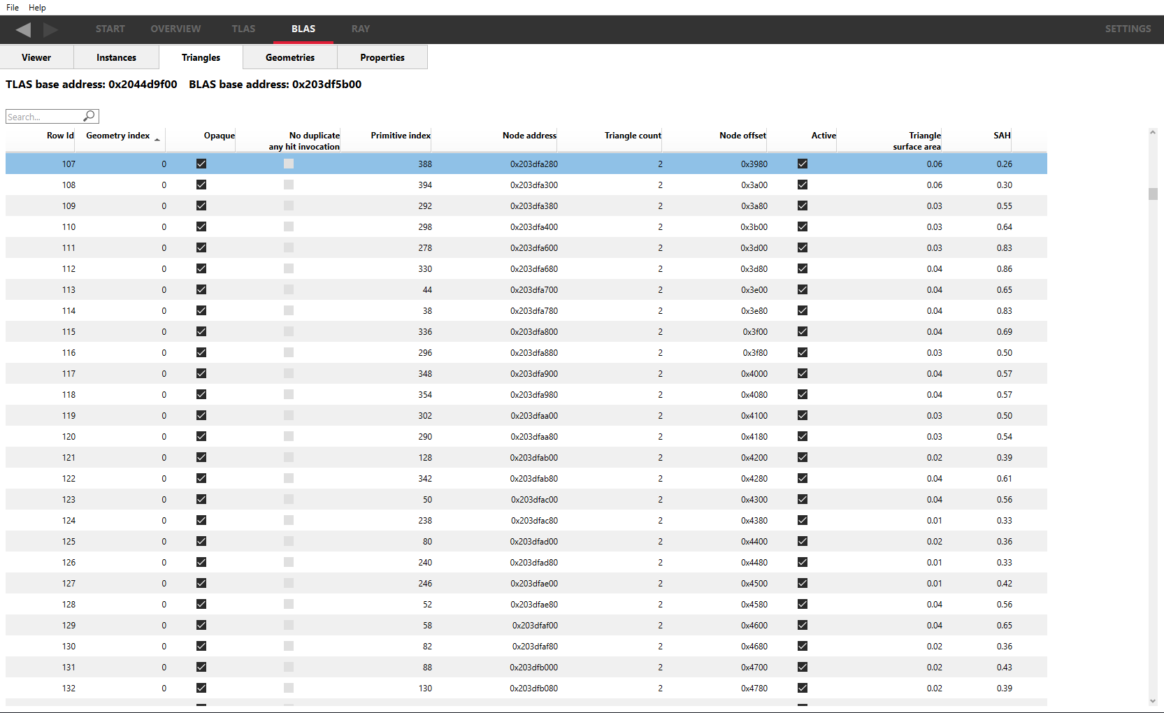 此窗格与 TLAS 查看器非常相似,只是叶节点是三角形而不是实例。