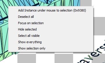 - 将鼠标下的实例添加到选择中 - 选择鼠标下的实例。可以选择多个实例。一种可能的用例是选择感兴趣的实例,并将场景中的其他所有内容隐藏起来。