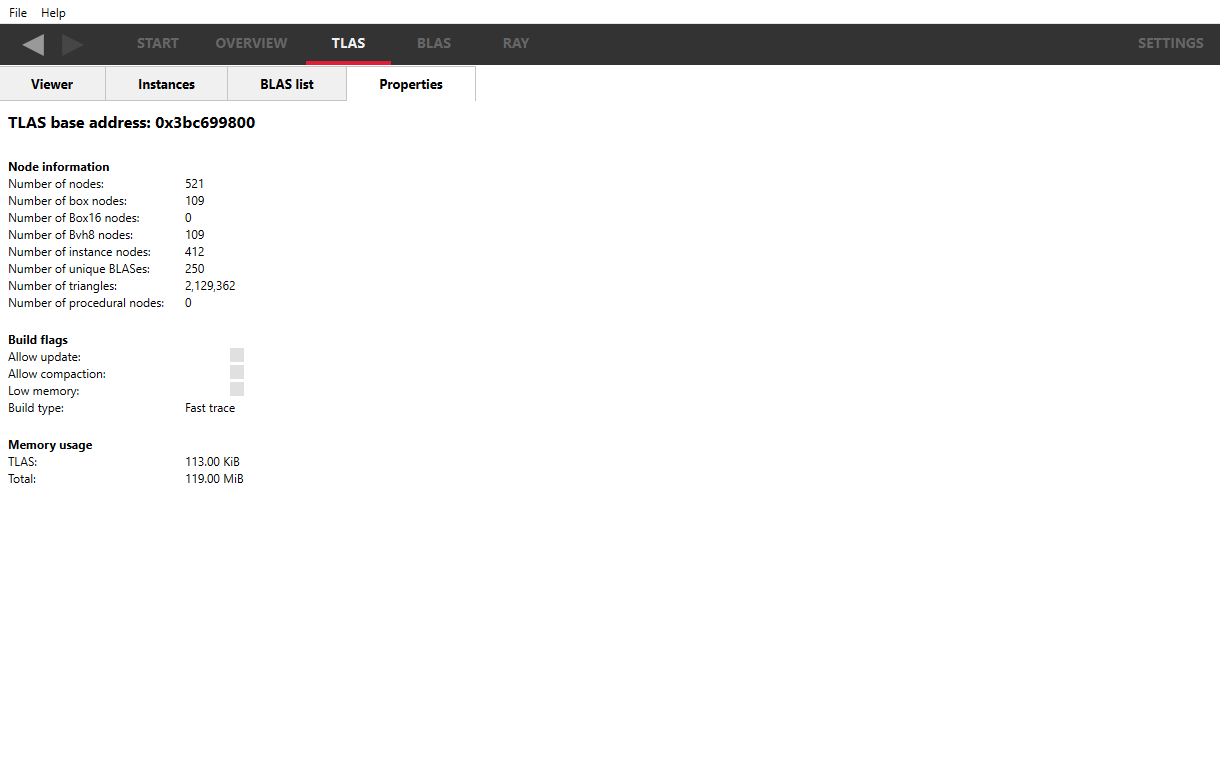 实例地址 – TLAS 中实例节点的可视 GPU 地址。